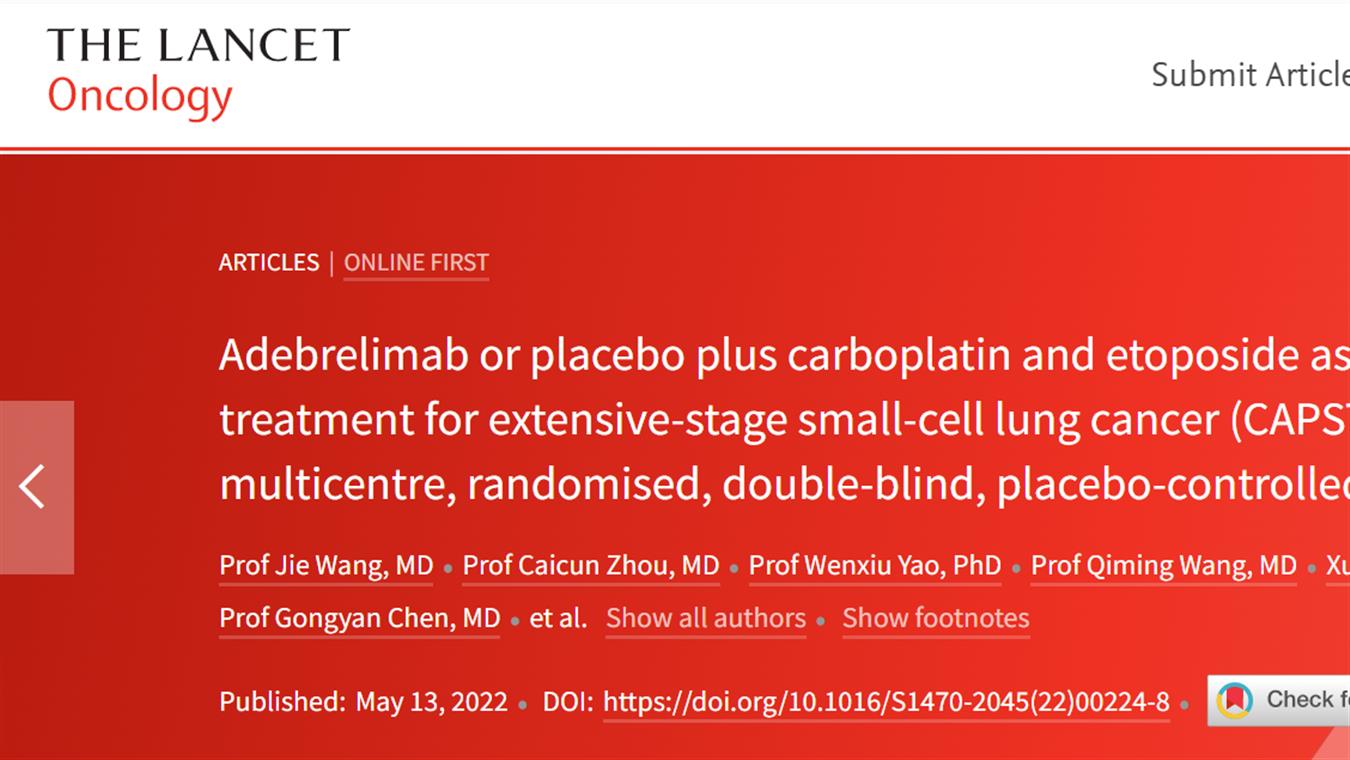尊龙卡瑞利珠单抗联合阿帕替尼最新研究成果荣登《柳叶刀·肿瘤》